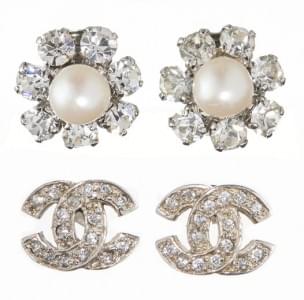 3107. Christian Dior, clips d'oreilles fantaisie sertis de pierres et...