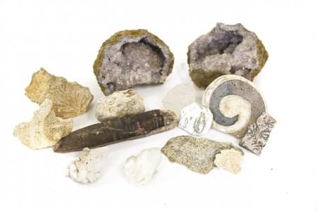 3110. Lot de divers cristaux de quartz, géodes et fossiles