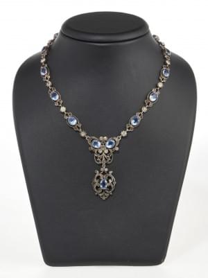 3114. Collier serti de pierres d'imitations pour le saphir et le diama...