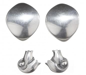 3122. Georg Jensen, lot de deux paires de boucles d'oreilles stylisées...