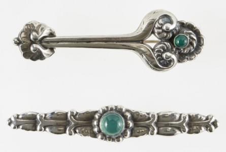 3125. Hans Hansen et Georg Jensen, lot de deux broches serties d'agate...