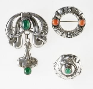 3143. Georg Jensen, lot de trois broches à motifs feuillagés et florau...