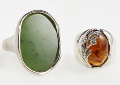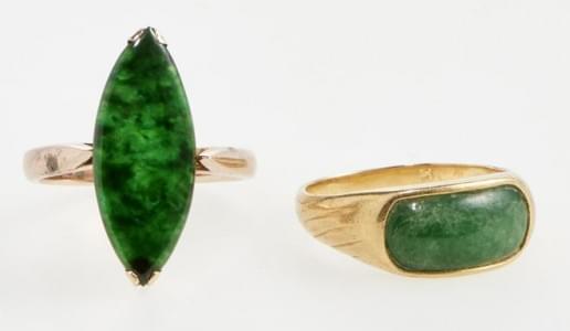 3126. Lot de deux bagues, l'une sertie d'une plaque de jade et l'autre...
