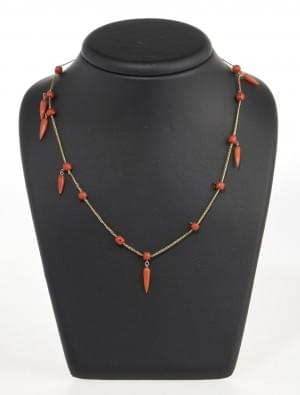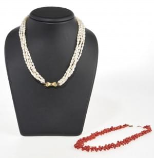 3130. Lot de deux colliers, l'un en corail et l'autre composé de quatr...
