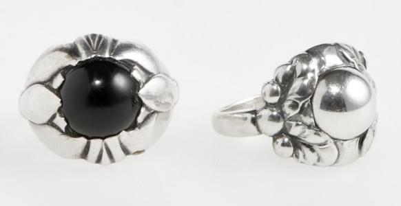 3139. Georg Jensen, lot de deux bagues stylisées, l'une sertie d'un on...