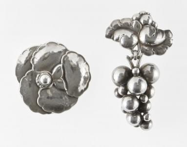 3142. Georg Jensen, lot de deux broches, l'une à motif de grappe de ra...