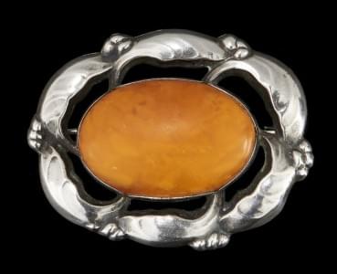 3145. Georg Jensen, broche sertie d'un cabochon d'ambre