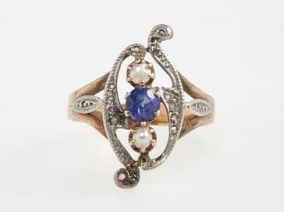 3177. Bague sertie d'un diamant et d'une perle en "toi et moi"