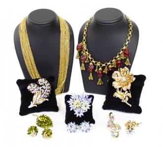 3165. Trifari, lot de bijoux fantaisie sertis de pierres d'imitation