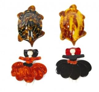 3168. Léa Stein, lot de quatre broches à motif de deux danseuses et de...