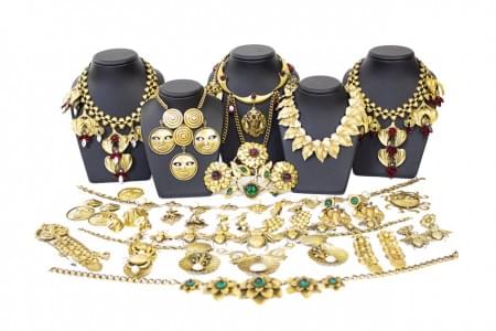 Métal doré. On joint un ensemble de bijoux fantaisie à motif de...