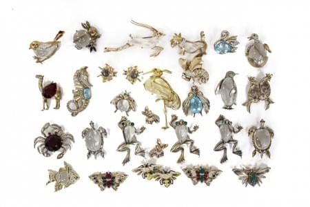 Argent et argent 925. On joint un ensemble de broches animaux en...