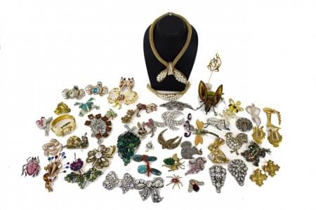 3172. Trifari et Coro, lot de broches animaux serties de lucite et de...