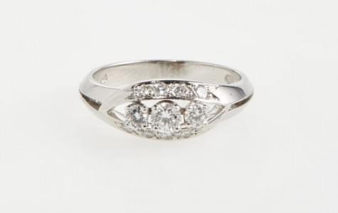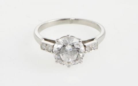 3178. Bague sertie d'un diamant d'imitation épaulé de diamants