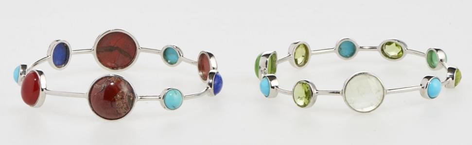 3182. Ensemble de deux bracelets sertis de turquoises, jaspes et autre...