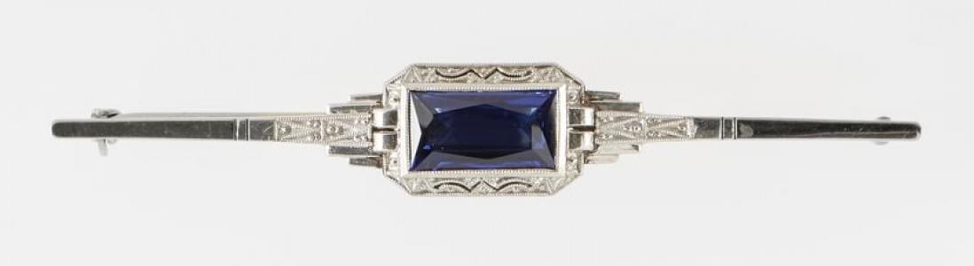 3186. Broche barrette sertie d'un saphir synthétique taille rectangle