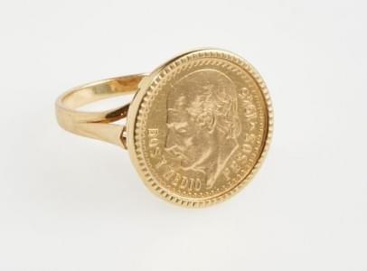 3189. Bague sertie d'une pièce de deux pesos datée de 1945