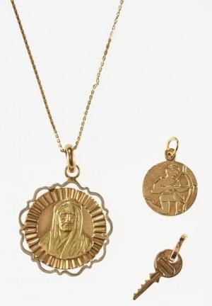 3191. Chaîne retenant une médaille de baptême, une médaille du signe d...