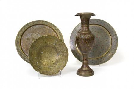 3712. Un vase, une coupe et deux plats, Iran et Inde