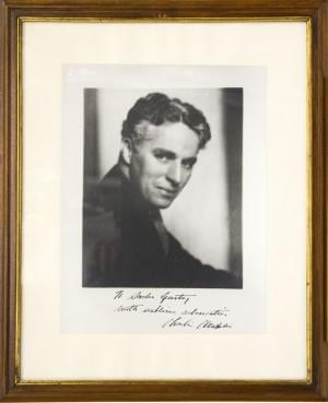 Portrait de Charlie Chaplin, tirage argentique, dédicace et sign...