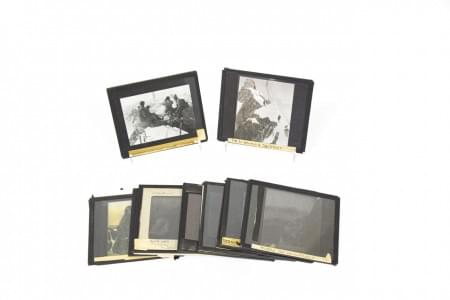 3720. 12 plaques photographiques sur verre figurant des vues de montag...