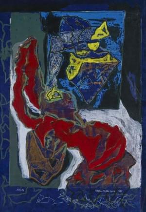 crayon gras sur papier signé et daté Yves Paul 95,...