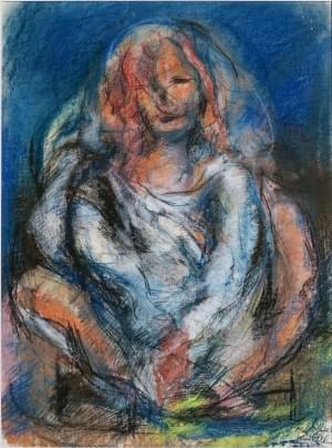 Portrait de femme au chapeau, pastel sur papier, 53x45 cm