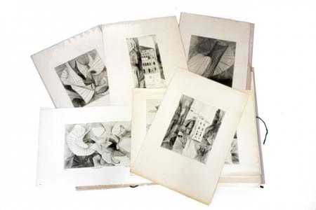 Cartable de gravures sur papier, signées P Jeener, de 26x20 à 40...