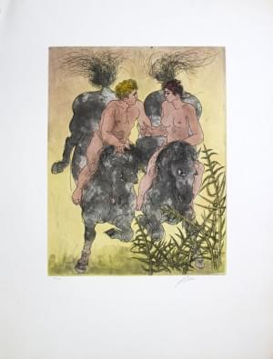Don Quijote et Sancho Panza, lithographie, signée et numérotée 6...