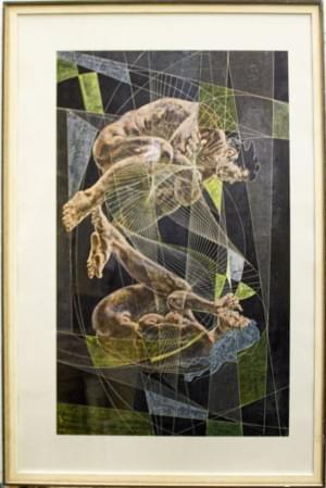 Composition surréaliste, estampe sur papier, 36x28,5 cm
