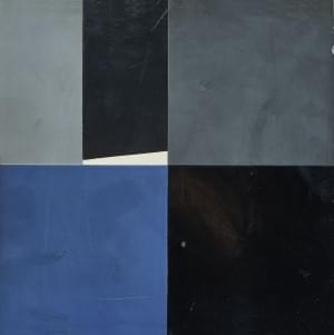 Abstraction, peinture sur tôle dans les tons de gris, 14x15 cm