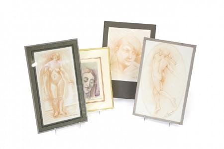 4 études, sanguines sur papier, signées e...
