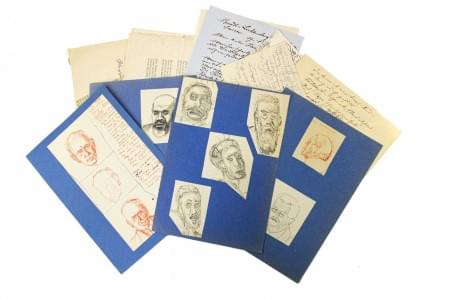 Ensemble de dessins, avec études de portraits, de 7x6 à 8x9 cm