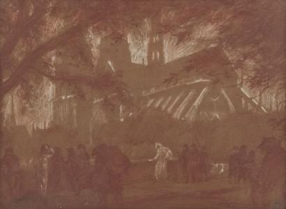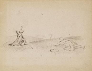Etude de peintre près d'un arbre, crayon, fusain et craie blanch...