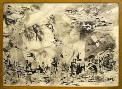 Paysage abstrait, encre sur papier, signée et datée 53, 40x52 cm
