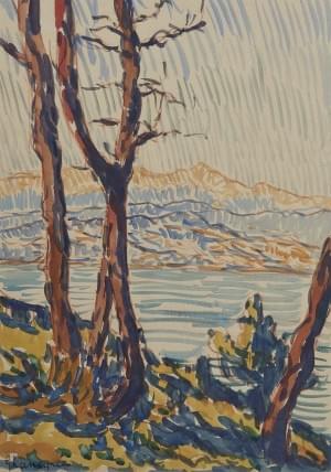 Vue du lac, aquarelle sur papier, signée, 37x26 cm