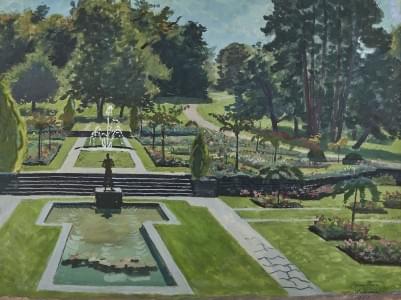 La roseraie du parc de La Grange, aquarelle et gouache sur papie...