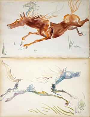 Deux études de chevaux, paire d'aquarelles sur papier, signées L...