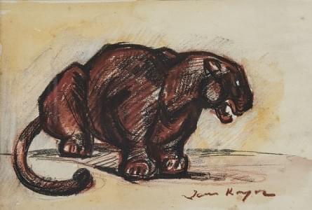 Panthère, pastel gras sur papier signé, 16x24 cm