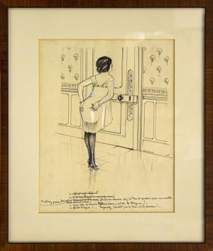 Conversation à travers une porte, dessin, 31x24 cm