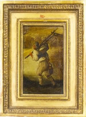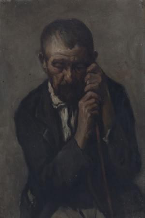 Portrait d'homme à la canne, huile sur carton, attribuée au vers...