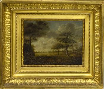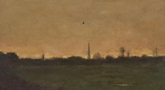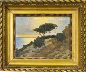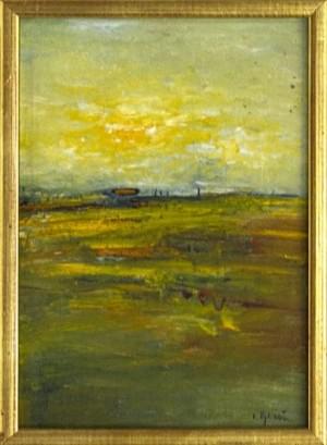 Paysage au soleil couchant, huile sur panneau, 17x28 cm