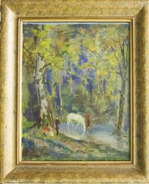 Personnages sous l'arbre, huile sur toile, 53x64,5 cm