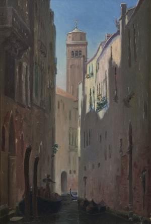 Canal de Venise, huile sur toile, signée au dos, 50x31 cm