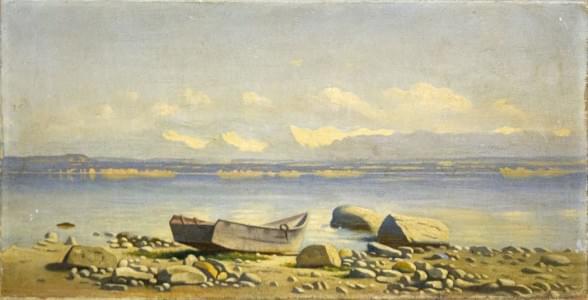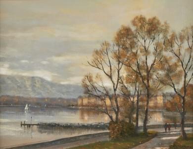 Vue du lac Léman, huile sur toile, 29x57 cm