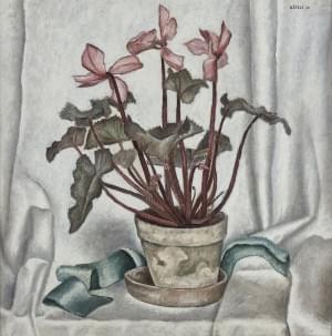 Cyclamen, huile sur toile, signée et datée 30, 50x50 cm