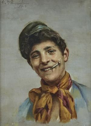 Portait de garçon napolitain, huile sur toile, signée et datée 1...