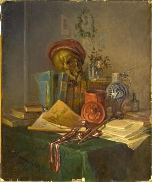Nature morte, huile sur toile, signée C. Schumacher et datée 187...