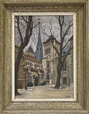 La cathédrale de Genève depuis la place de la Taconnerie, huile...