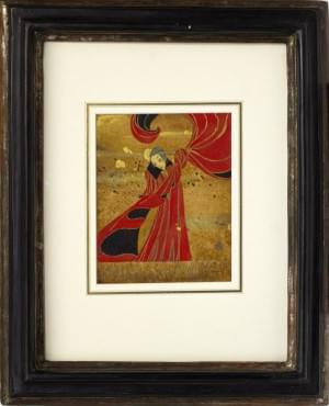 Femme au voile rouge, technique mixte sur papier, signature non...